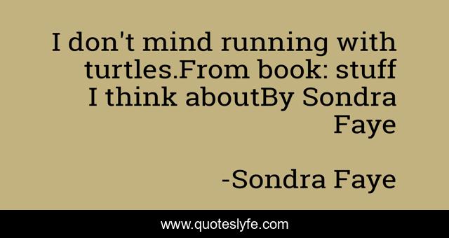 This page presents the quote "I don't mind running with turtles.From book: stuff I think aboutBy Sondra Faye". Author of this quote is Sondra Faye. This quote is about perseverance, turtles, slow-and-steady, endurance, running, sondra-faye,.