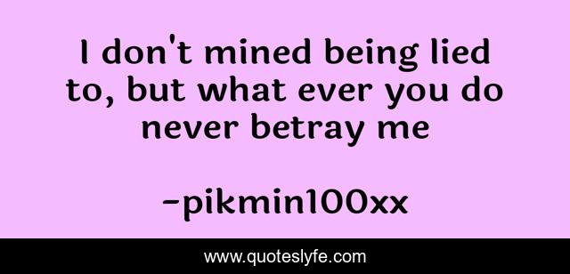 This page presents the quote "I don't mined being lied to, but what ever you do never betray me". Author of this quote is pikmin100xx. This quote is about lies, betrayal,.