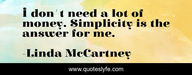 This page presents the quote "I don't need a lot of money. Simplicity is the answer for me.". Author of this quote is Linda McCartney. This quote is about me, simplicity, need,.