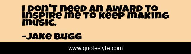 This page presents the quote "I don't need an award to inspire me to keep making music.". Author of this quote is Jake Bugg. This quote is about me, inspire, award,.