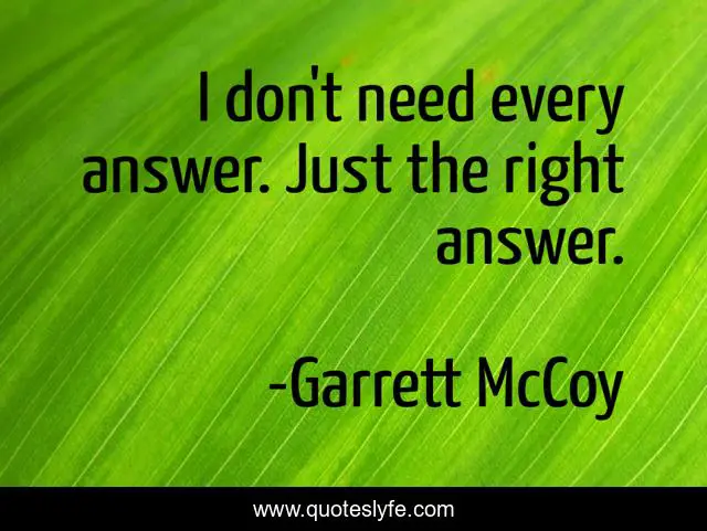 This page presents the quote "I don't need every answer. Just the right answer.". Author of this quote is Garrett McCoy. This quote is about answer, enthusiasm, right, humor, inspirational,.
