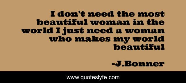 This page presents the quote "I don't need the most beautiful woman in the world I just need a woman who makes my world beautiful". Author of this quote is J.Bonner. .