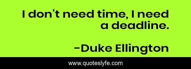 This page presents the quote "I don't need time, I need a deadline.". Author of this quote is Duke Ellington. This quote is about enthusiasm, deadline, inspirational, time,.