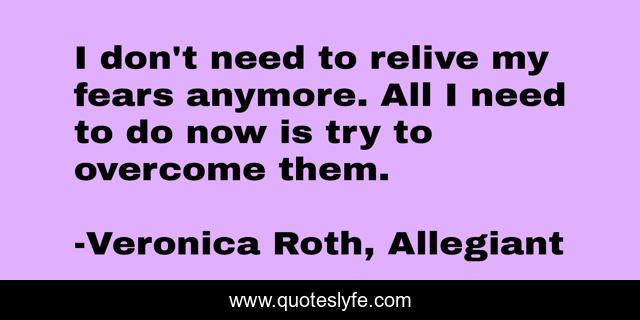 This page presents the quote "I don't need to relive my fears anymore. All I need to do now is try to overcome them.". Author of this quote is Veronica Roth, Allegiant. This quote is about four, overcome-overcome, fears, inspire, tobias,.