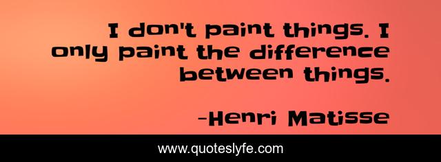 This page presents the quote "I don't paint things. I only paint the difference between things.". Author of this quote is Henri Matisse. This quote is about paint, difference, between,.