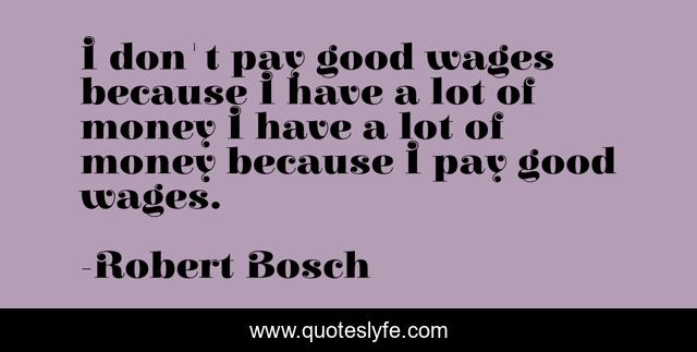 This page presents the quote "I don't pay good wages because I have a lot of money I have a lot of money because I pay good wages.". Author of this quote is Robert Bosch. This quote is about pay, wages, good,.