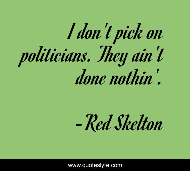 This page presents the quote "I don't pick on politicians. They ain't done nothin'.". Author of this quote is Red Skelton. .