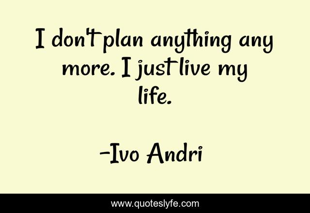 This page presents the quote "I don't plan anything any more. I just live my life.". Author of this quote is Ivo Andrić. This quote is about life, live, plan,.