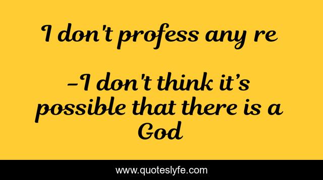"I don't think it’s possible that there is a God Quotes." Quoteslyfe.com, 2025. Fri. 05 Dec. 2025. <https://www.quoteslyfe.com/quote/I-don-t-profess-any-re-43912>.