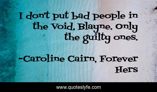 This page presents the quote "I don't put bad people in the Void, Blayne. Only the guilty ones.". Author of this quote is Caroline Cairn, Forever Hers. This quote is about angsty-love, paranormal-romance,.