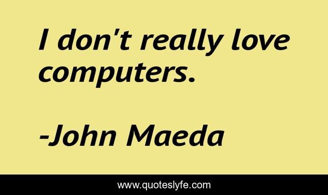This page presents the quote "I don't really love computers.". Author of this quote is John Maeda. This quote is about love, affection, really,.