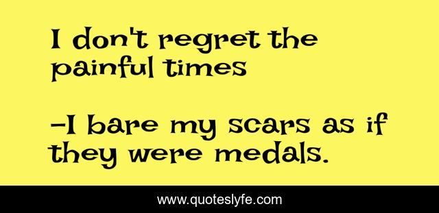 This page presents the quote "I don't regret the painful times". Author of this quote is I bare my scars as if they were medals.. .