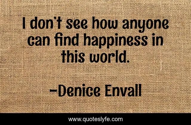 This page presents the quote "I don’t see how anyone can find happiness in this world.". Author of this quote is Denice Envall. This quote is about living, life, hope, sadness, depression, world, happiness, hopeless,.