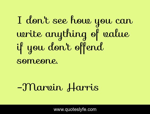 This page presents the quote "I don't see how you can write anything of value if you don't offend someone.". Author of this quote is Marvin Harris. This quote is about controversy, art, value, writing,.