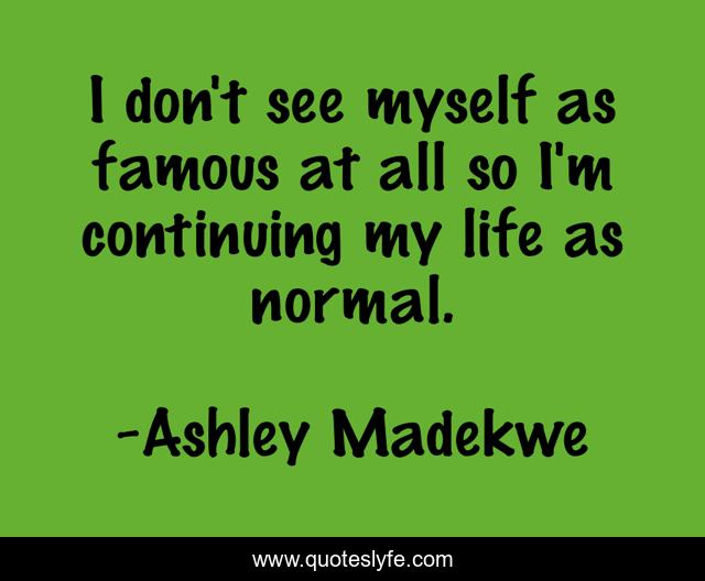 This page presents the quote "I don't see myself as famous at all so I'm continuing my life as normal.". Author of this quote is Ashley Madekwe. This quote is about life, my life, myself,.