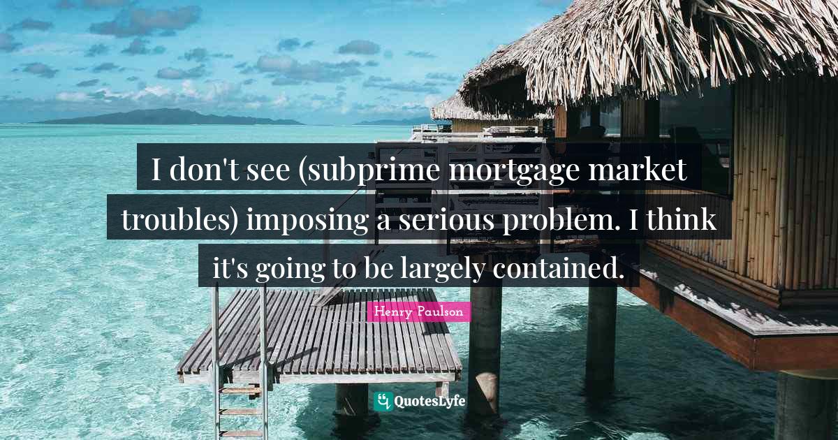 "Henry Paulson Quotes." Quoteslyfe.com, 2026. Wed. 14 Jan. 2026. <https://www.quoteslyfe.com/quote/I-don-t-see-subprime-mortgage-market-648913>.