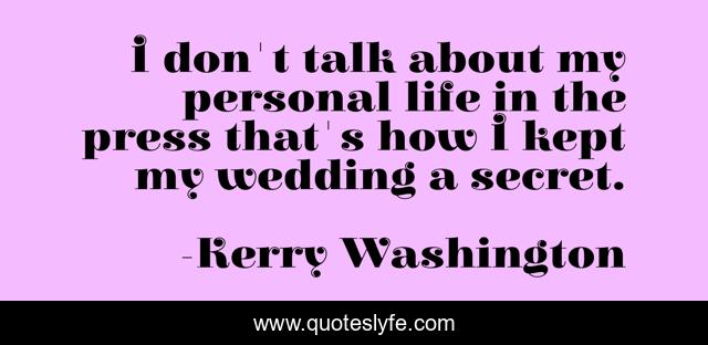 This page presents the quote "I don't talk about my personal life in the press that's how I kept my wedding a secret.". Author of this quote is Kerry Washington. This quote is about personal, life, secret,.