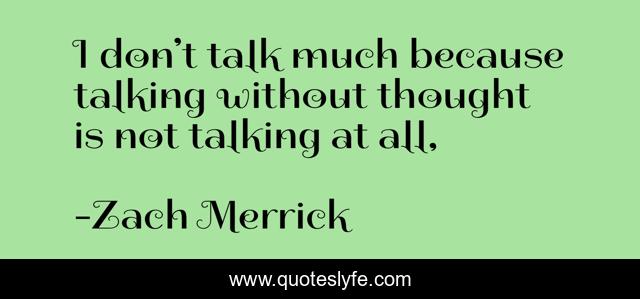 This page presents the quote "I don’t talk much because talking without thought is not talking at all, ". Author of this quote is Zach Merrick. This quote is about hapiness, spirit, talking,.