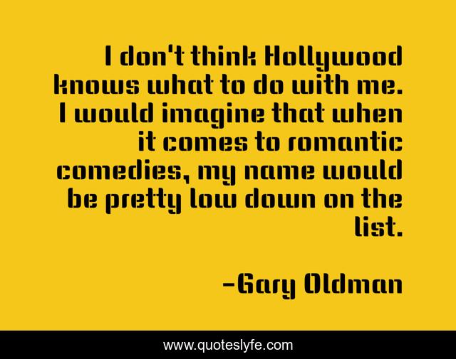 This page presents the quote "I don't think Hollywood knows what to do with me. I would imagine that when it comes to romantic comedies, my name would be pretty low down on the list.". Author of this quote is Gary Oldman. This quote is about me, name, think,.