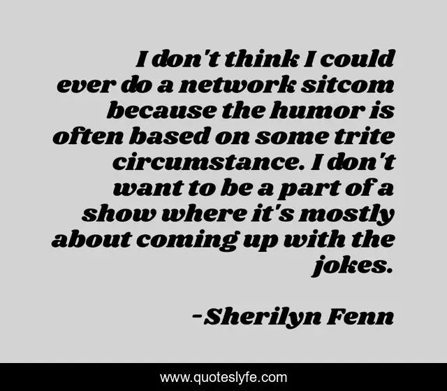 This page presents the quote "I don't think I could ever do a network sitcom because the humor is often based on some trite circumstance. I don't want to be a part of a show where it's mostly about coming up with the jokes.". Author of this quote is Sherilyn Fenn. .