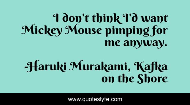 This page presents the quote "I don't think I'd want Mickey Mouse pimping for me anyway.". Author of this quote is Haruki Murakami, Kafka on the Shore. This quote is about humorous, humour,.