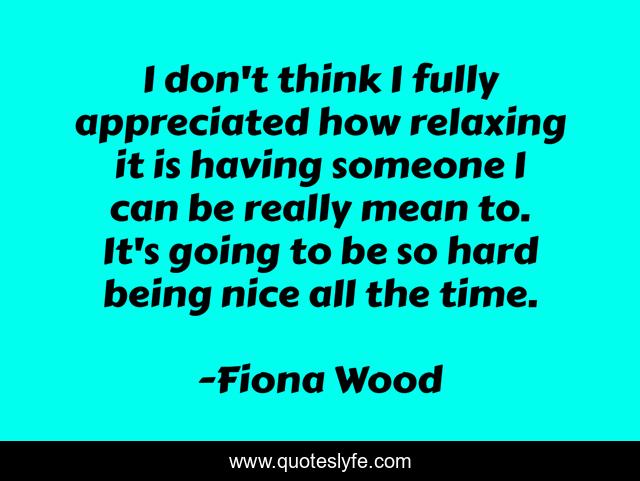 This page presents the quote "I don't think I fully appreciated how relaxing it is having someone I can be really mean to. It's going to be so hard being nice all the time.". Author of this quote is Fiona Wood. This quote is about comfort, niceties, relaxation,.
