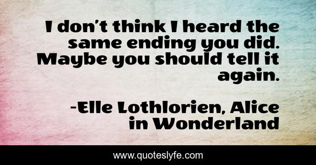 This page presents the quote "I don’t think I heard the same ending you did. Maybe you should tell it again.". Author of this quote is Elle Lothlorien, Alice in Wonderland. .