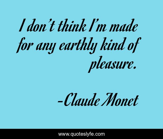 This page presents the quote "I don’t think I’m made for any earthly kind of pleasure.". Author of this quote is Claude Monet. .