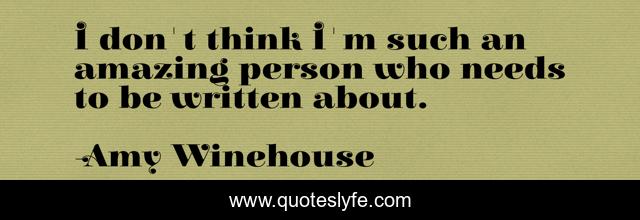 This page presents the quote "I don't think I'm such an amazing person who needs to be written about.". Author of this quote is Amy Winehouse. This quote is about person, needs, think,.