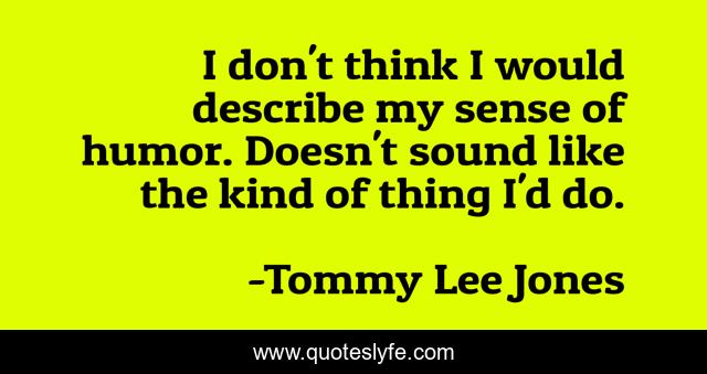 This page presents the quote "I don't think I would describe my sense of humor. Doesn't sound like the kind of thing I'd do.". Author of this quote is Tommy Lee Jones. This quote is about sense of humor, think, kind,.