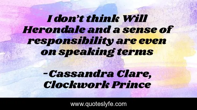 This page presents the quote "I don’t think Will Herondale and a sense of responsibility are even on speaking terms". Author of this quote is Cassandra Clare, Clockwork Prince. This quote is about humor, responsibility,.