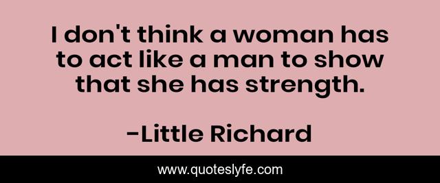 This page presents the quote "I don't think a woman has to act like a man to show that she has strength.". Author of this quote is Little Richard. This quote is about woman, think, man,.