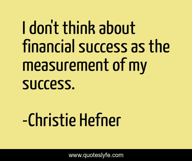 This page presents the quote "I don't think about financial success as the measurement of my success.". Author of this quote is Christie Hefner. This quote is about financial, think,.