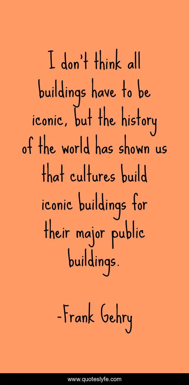This page presents the quote "I don't think all buildings have to be iconic, but the history of the world has shown us that cultures build iconic buildings for their major public buildings.". Author of this quote is Frank Gehry. This quote is about world, think, cultures,.