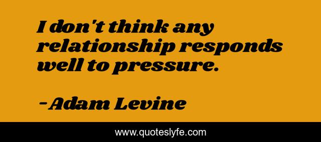 This page presents the quote "I don't think any relationship responds well to pressure.". Author of this quote is Adam Levine. This quote is about pressure, well, think,.