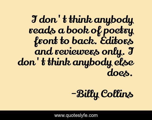 "Billy Collins Quotes." Quoteslyfe.com, 2025. Fri. 05 Dec. 2025. <https://www.quoteslyfe.com/quote/I-don-t-think-anybody-reads-a-326195>.