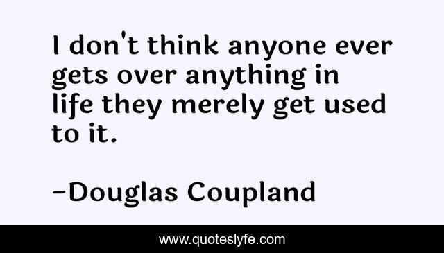 This page presents the quote "I don't think anyone ever gets over anything in life they merely get used to it.". Author of this quote is Douglas Coupland. .