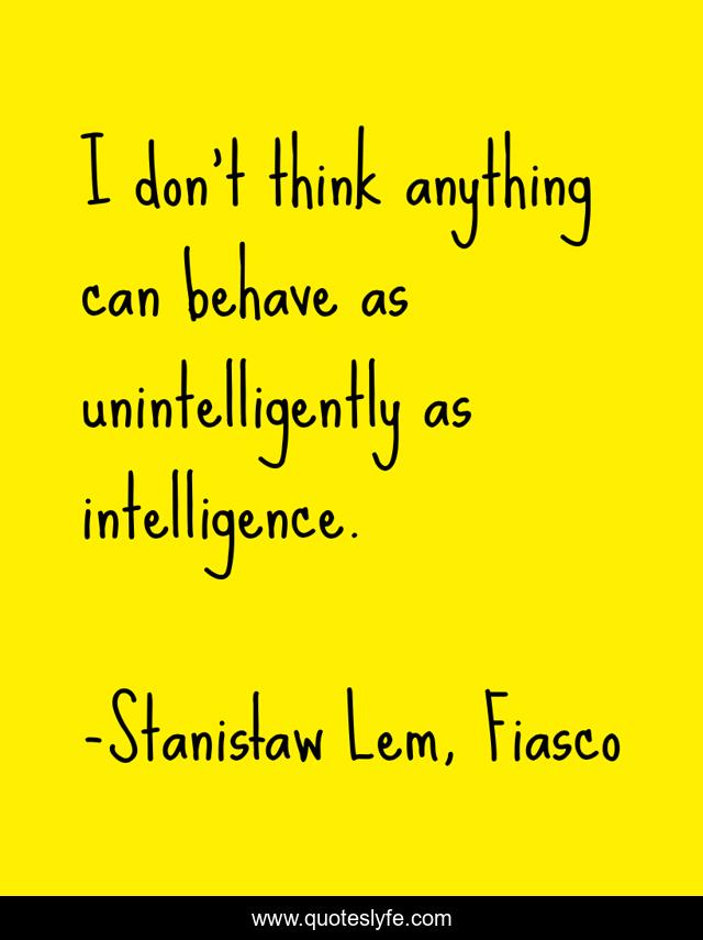 This page presents the quote "I don't think anything can behave as unintelligently as intelligence.". Author of this quote is Stanisław Lem, Fiasco. This quote is about intelligence, mind,.