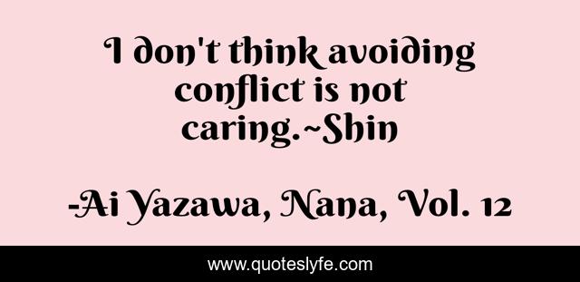 This page presents the quote "I don't think avoiding conflict is not caring.~Shin". Author of this quote is Ai Yazawa, Nana, Vol. 12. This quote is about caring, conflict,.