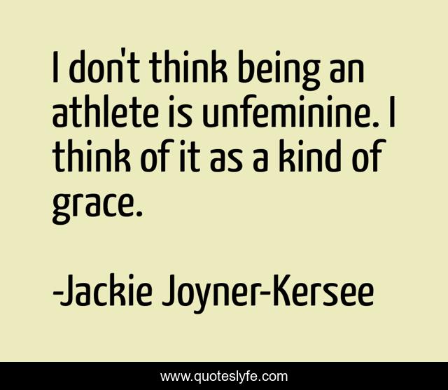 This page presents the quote "I don't think being an athlete is unfeminine. I think of it as a kind of grace.". Author of this quote is Jackie Joyner-Kersee. .