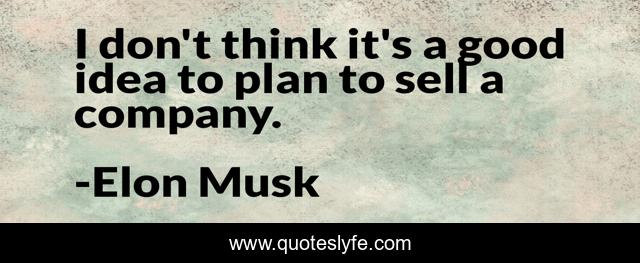 This page presents the quote "I don't think it's a good idea to plan to sell a company.". Author of this quote is Elon Musk. This quote is about company, good, plan,.