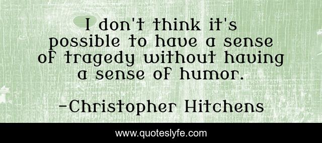 This page presents the quote "I don't think it's possible to have a sense of tragedy without having a sense of humor.". Author of this quote is Christopher Hitchens. This quote is about tragedy, think,.