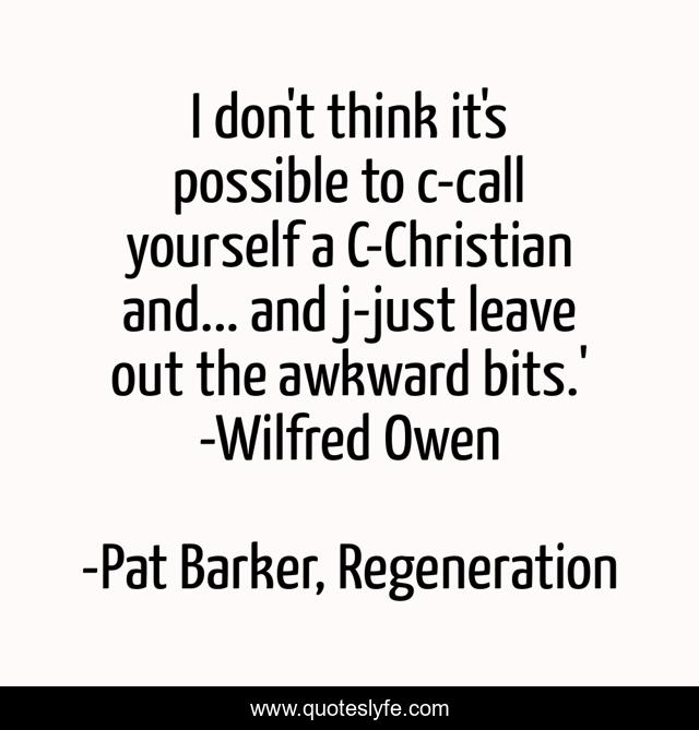 This page presents the quote "I don't think it's possible to c-call yourself a C-Christian and... and j-just leave out the awkward bits.' -Wilfred Owen". Author of this quote is Pat Barker, Regeneration. This quote is about religion, christianity,.