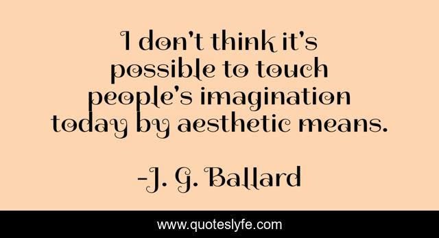 This page presents the quote "I don't think it's possible to touch people's imagination today by aesthetic means.". Author of this quote is J. G. Ballard. This quote is about think, today, people,.