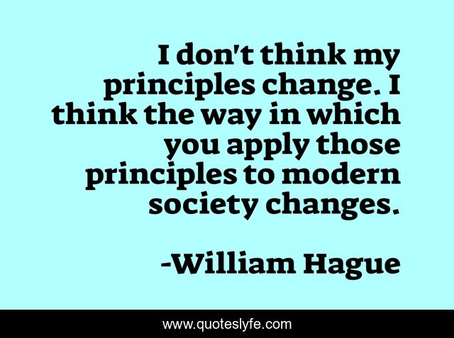 This page presents the quote "I don't think my principles change. I think the way in which you apply those principles to modern society changes.". Author of this quote is William Hague. This quote is about changes, think, change,.