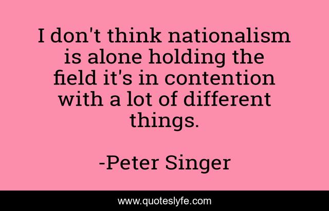 This page presents the quote "I don't think nationalism is alone holding the field it's in contention with a lot of different things.". Author of this quote is Peter Singer. This quote is about nationalism, think,.