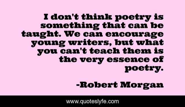 This page presents the quote "I don't think poetry is something that can be taught. We can encourage young writers, but what you can't teach them is the very essence of poetry.". Author of this quote is Robert Morgan. This quote is about think, young,.