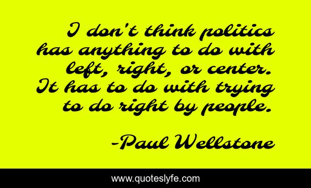 This page presents the quote "I don't think politics has anything to do with left, right, or center. It has to do with trying to do right by people.". Author of this quote is Paul Wellstone. This quote is about trying, think, people,.