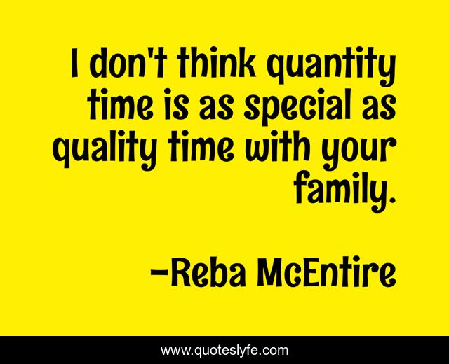 This page presents the quote "I don't think quantity time is as special as quality time with your family.". Author of this quote is Reba McEntire. This quote is about quality, think, time,.