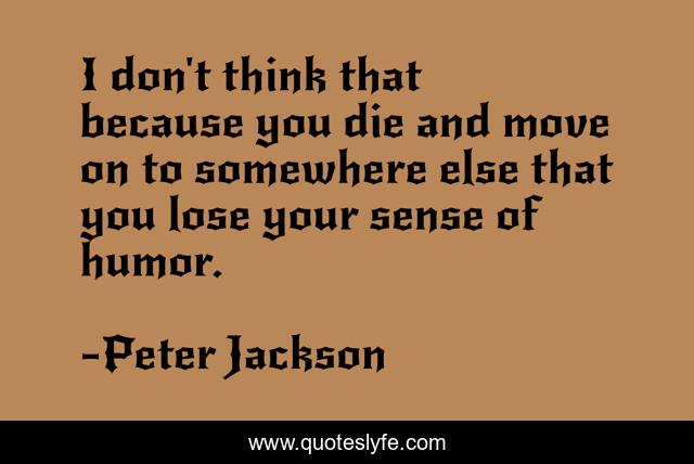 This page presents the quote "I don't think that because you die and move on to somewhere else that you lose your sense of humor.". Author of this quote is Peter Jackson. This quote is about sense of humor, think,.